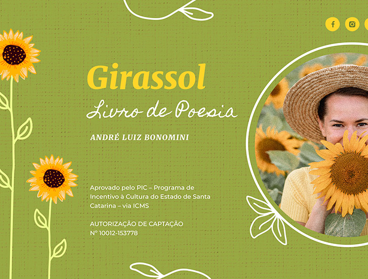 Este projeto tem como objetivo a publicação do Livro de Poesias “Girassol”, buscando fazer renascer a poética dentro do Vale do Itajaí, por ser berço do grande e imortal poeta Lindolf Bell, desta forma, aproximando a poesia daqueles que a apreciam ou, até mesmo, de quem não a lê com frequência em lê-la. Busca-se com essa proximidade uma identificação para que o leitor se sinta tocado, talvez até inspirado em se aventurar nesse mundo, expondo em versos seus sentimentos, pensamentos, visões, enfim, desenvolvendo seu lado poeta.
